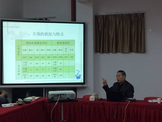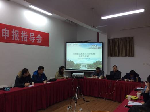 报告中,李西建教授鼓励青年教师一定要多阅读文献,在阅读中发现问题,同时结合专业和地域文化艺术特点,选择应用型的研究课题。并强调,学术上没有“天才”之说,唯有刻苦的钻研业务,才能由教书匠转化成高校教师。在填写申报书时,李教授强调指出,一定要严格遵守“3-5-2”评审规则,即选题占评分的30%,论证占评分的50%,现有研究基础占20%,并对选题的理论、现实、团队建设意义及中外学界的研究状况综述进行了翔实解说,就论证的框架、结构和具体所指及研究方法做了阐释,对前期研究成果在申报书中的意义做了说明。他以项目评审人的身份指出:申报表是项目能否立项的关键,建议大家确信:1、成功的基础依赖对学术问题的提炼;2、成功的条件需要研究的深入和细致;3、成功的保障必须对文本反复打磨修改。
