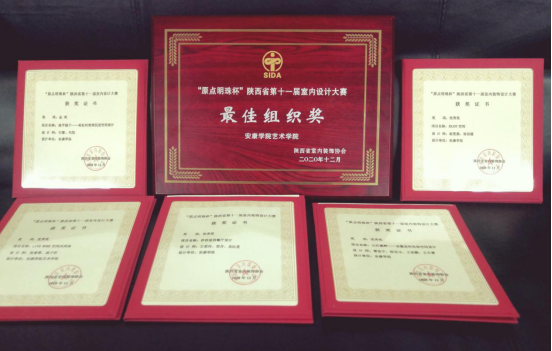 2020年12月29日下午,“原点明珠杯”陕西省第十一届室内设计大赛颁奖盛典暨“陕西省室内设计高峰论坛”在西安市中晶华邑酒店隆重举行。在本次大赛中,best365官网入口注册视角传达设计专业员工获得员工组金奖1项、优秀奖4项、入围奖3项。best365官网入口注册获“最佳组织奖”,指导教师王兵获“最佳导师奖”。best365官网入口注册设计系主任吴波、指导教师王兵携获奖员工参加了颁奖典礼。