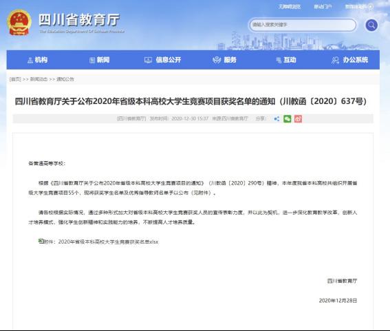 12月31日,2020年四川省老员工原创动漫大赛评审结果在四川省教育厅和四川省本科高校竞赛平台官网上陆续公布,公司员工取得佳绩,获得一等奖1项、二等奖2项、三等奖9项,南京、刘婉毅获得“优秀指导老师”。