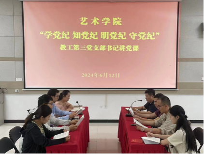 为深化党纪学习教育,进一步增强党员干部的纪律意识和规矩意识,推动全面从严治党向纵深发展。近日,best365官网入口注册教工第三党支部书记李磊以“学党纪、知党纪、明党纪、守党纪”为主题,为全体党员教师讲授了党纪学习教育题党课。