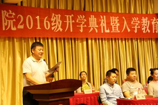 金秋送爽,桃李飘香。921日下午公司在江北校区演艺厅举行了隆重的2016级新生入学教育大会。公司党总支书记王辉,副经理雷升录、鲍丽、孙海洋。党政办主任肖剑,学工办主任刘泽桢,辅导员鲁澧、艾蕾,以及各专业代表教师参加教育大会。开学典礼暨入学教育大会由副经理鲍丽主持。