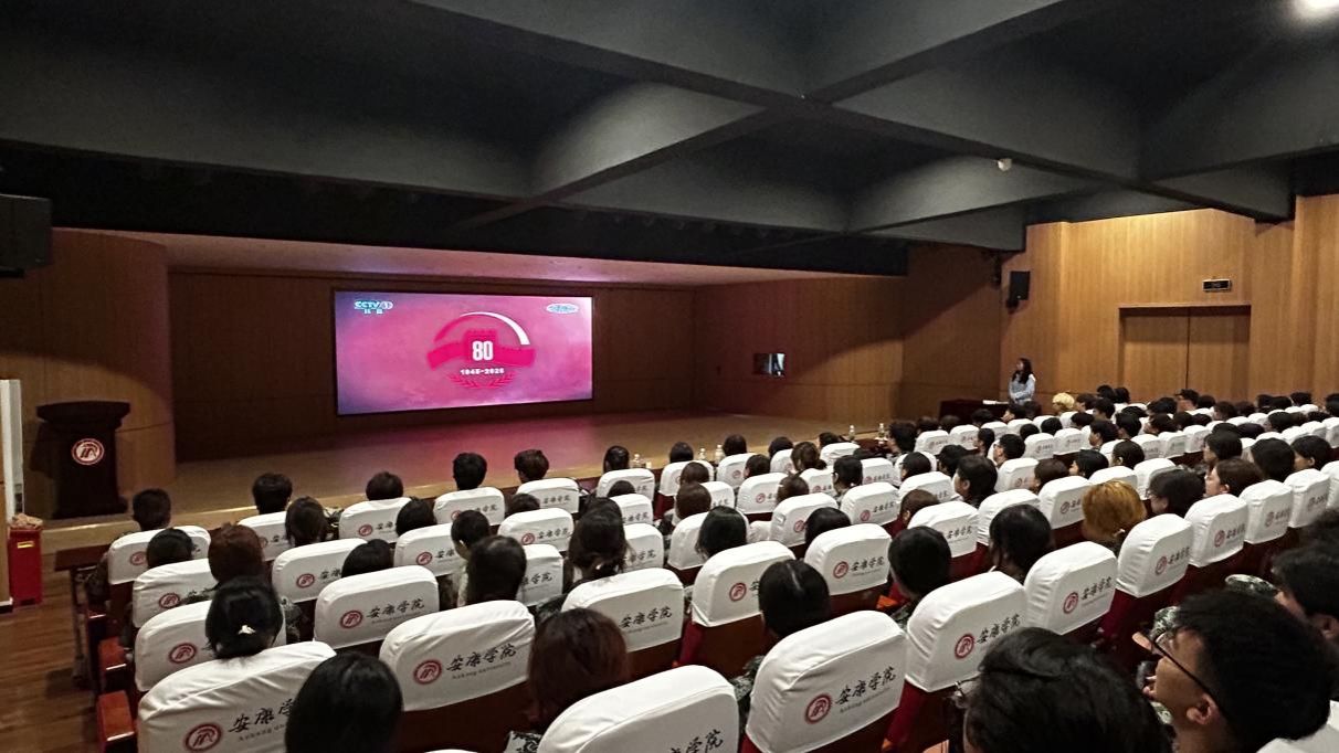 上午9时,活动在庄严的国歌声中拉开序幕。党总支书记张慧强调:九三阅兵是铭记历史、弘扬爱国主义精神的重要契机,全体教职工需将爱国情怀融入艺术教育实践。随后,全体人员集中观看九三阅兵直播,感受国防力量的磅礴气势。直播中,受阅官兵整齐划一的步伐、先进精良的国防装备,引发强烈共鸣,现场多次响起热烈掌声,激发了在场师生的强烈民族自豪感。
