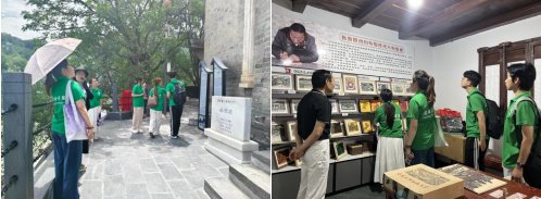 实践团队抵达蜀河古镇后,参观了杨泗庙、黄州会馆、古商铺与钱庄旧址、骡马古道、清真寺、水文石刻,电报局旧址等众多遗址,通过与传承人的交流了解旬阳传统木刻版画,它是孕育于秦巴汉水地域文化,承载着数百年来当地的历史记忆与民俗风情,2022年被列入陕西省第七批非物质文化遗产名录。