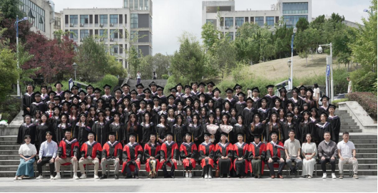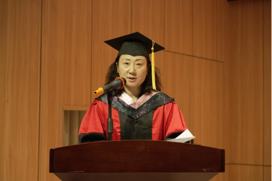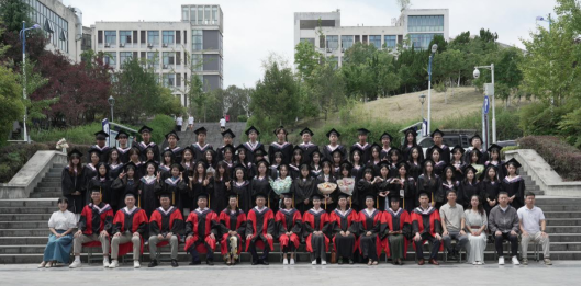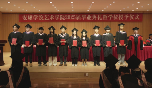 随后,举行的学位授予仪式将典礼推向高潮。与会领导、教师代表为获得学士学位的毕业生拨正流苏、授予学位证书,并合影留念。