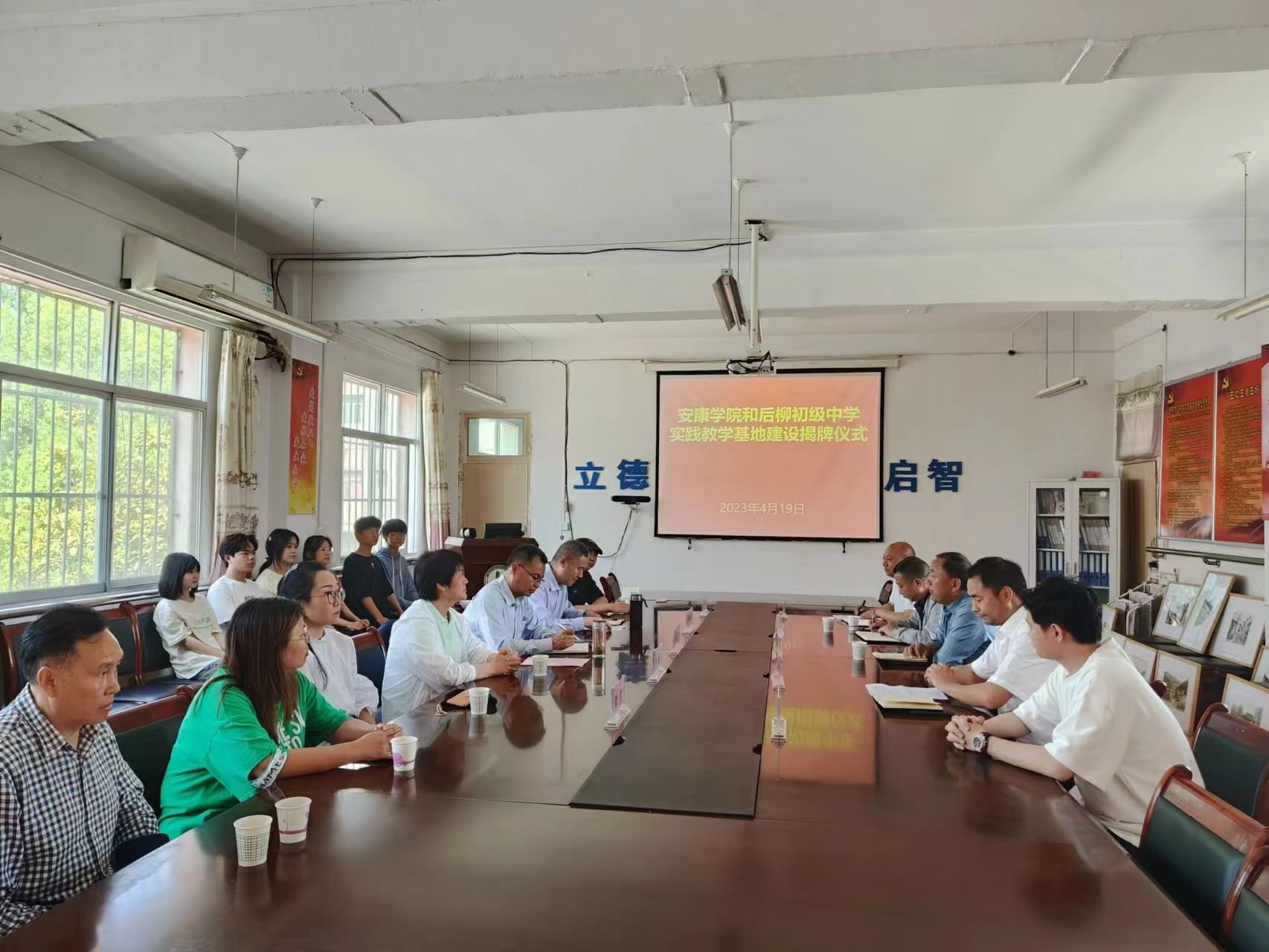 为进一步对标人才培养定位加强在基层公司的实践教学基地建设,推进美术学省级一流专业建设。4月19日下午,公司在石泉县后柳初级中学开展基层公司美育调研并举行了共建实践教学基地签约授牌仪式。best365官网入口注册经理成党伟、副经理孙海洋、美术系主任杜敏,石泉县教体科技局党委委员、师训教研中心主任陈永健,教育股股长熊军,后柳中学副董事长刘正斌、尹增敬出席挂牌仪式,best365官网入口注册美术学专业师生代表10余人参加活动。