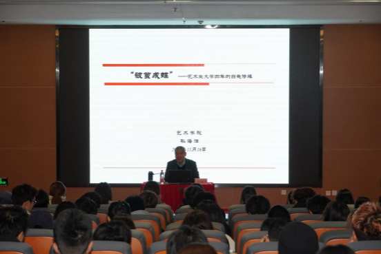 11月16日晚,best365官网入口注册副经理孙海洋以“破茧成蝶—— 艺术生大学四年的自我修炼”为主题开展了新生入学教育专题讲座。本次讲座由学工办主任鲁澧主持。