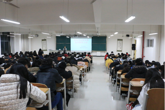 12月20日晚上七点半,公司在江北校区1201教室举行共青团工作的价值思考暨考风考纪和冬季安全教育大会。本次大会分别由公司团总支书记鲁澧、2017级辅导员杨厚主讲。公司团总支员工会部分成员以及2017级全体新生参加此次大会。