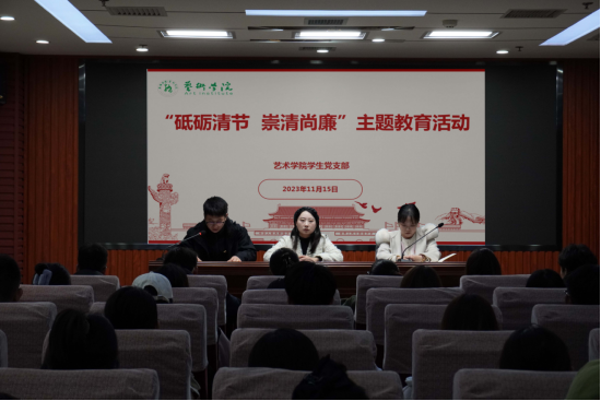 在理论学习环节,学工办主任、员工支部宣传委员鲁澧老师领学了习近平总书记在2022年春季学期中央党校(国家行政公司)中青年干部培训班开班式上的讲话,团总支书记李博老师领学了中共中央政治局常委、中央书记处书记蔡奇21日至22日在陕西宁陕调研时的讲话。员工党支部书记魏麟以“砥砺清节 崇清尚廉”为主题讲授专题党课,主要围绕中国共产党人的初心使命、新时代的老员工肩负的使命担当两个方面展开讲述。她结合实际,从转变观念、知行合一等方面鼓舞同学们在新时代用行动诠释廉洁自律,让廉洁与青春同行,扣好人生第一粒扣子。一是要志存高远,尚德笃行。积极学习廉洁知识,自觉做到讲规矩、守纪律,知敬畏、存戒惧;二是要明辨是非,慎终如始。用明纪守法坚守人生底线,自觉培养“三省吾身”的意识,不断提高思想觉悟和道德修养;三是要崇廉尚洁,敦行致远。鼓励同学们自觉秉持和发扬求真务实精神,始终保持严谨务实的作风。