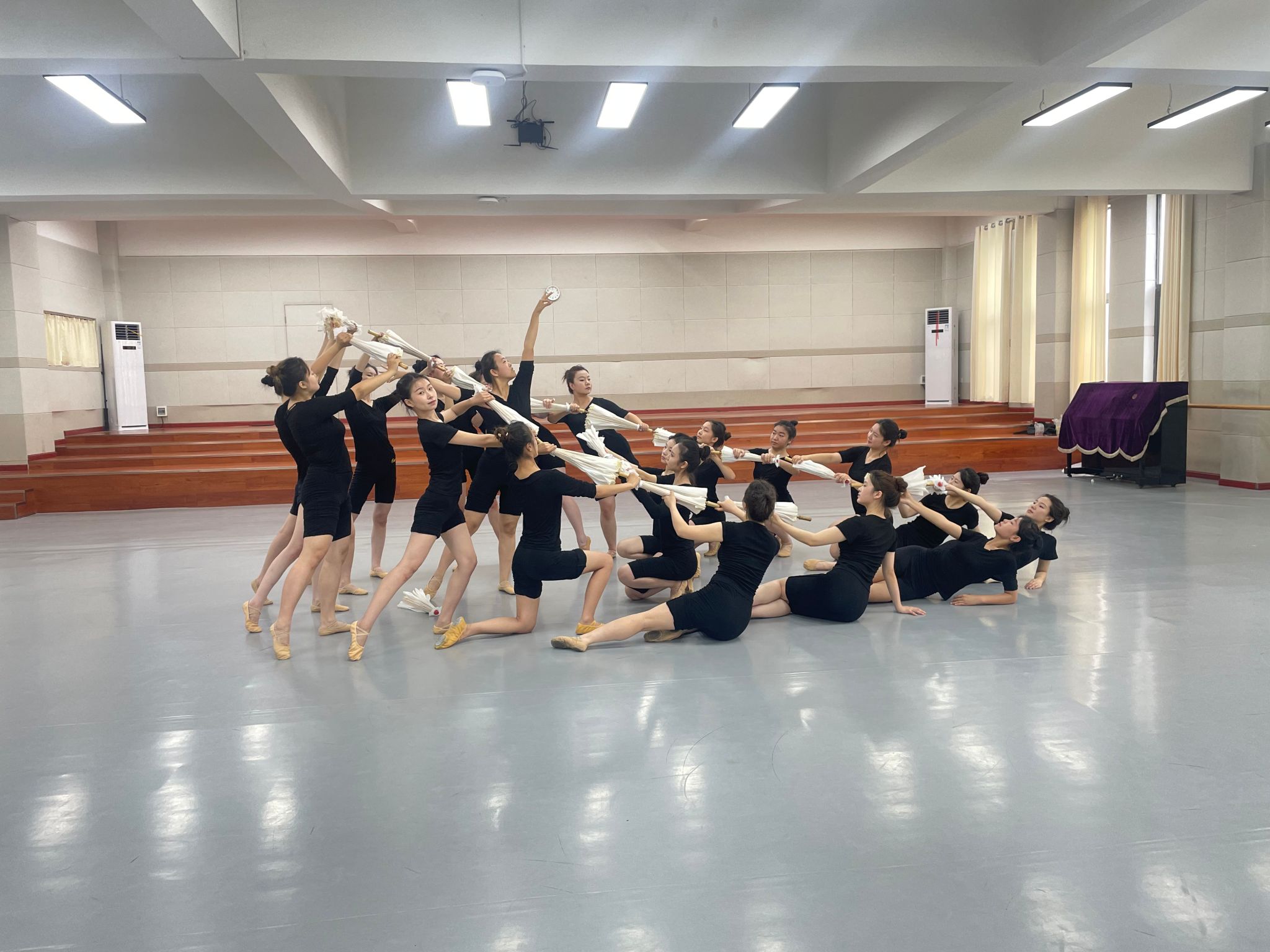 员工在舞蹈排练厅排练节目