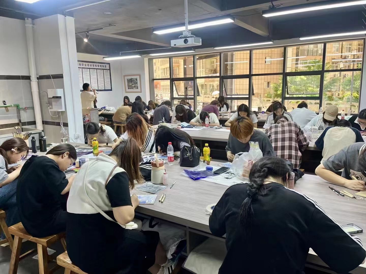 员工在版画课堂上