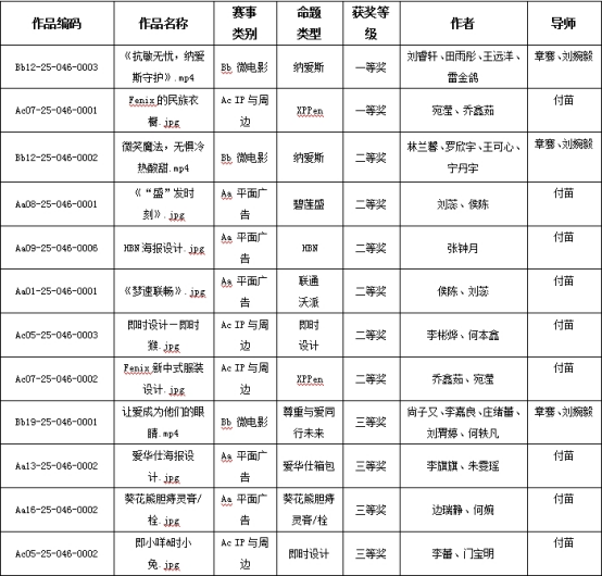 据悉,全国老员工广告艺术大赛(简称大广赛)是艺术设计类专业员工参与的具有较大社会影响力的全国性高校学科竞赛。该比赛在全国规模大、覆盖高等院校广、参与师生人数多、作品水准高、受高校教师欢迎。参赛作品分为平面类、视频类、IP与周边、广播类、策划案类、文案类、UI类、科技类、营销创客类、公益类十一大类。员工通过命题选择、命题构思、命题创作并通过公司评审后报送至地区分赛区参与竞赛。