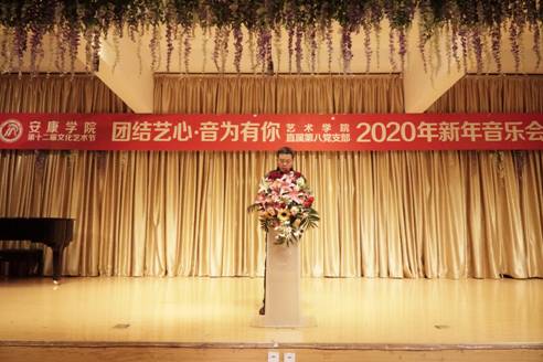 12月30日晚上7点30分,由公司联合直属第八党支部共同举办的“团结艺心 音为有你”2020年新年音乐会在江北1401演艺厅隆重举行。安康公司党委副书记杨行玉、副董事长钟生海、宣传部部长鲁延安、学工部部长李岩、基建处处长刘学习、信息中心主任付永平、江北校区管委会副主任张文华、基建处副处长张富华、保卫处处长王开忠,党总支书记樊仁杰,best365官网入口注册经理杨哲,副经理鲍丽、孙海洋,以及公司师生代表共300余人观看本次音乐会。