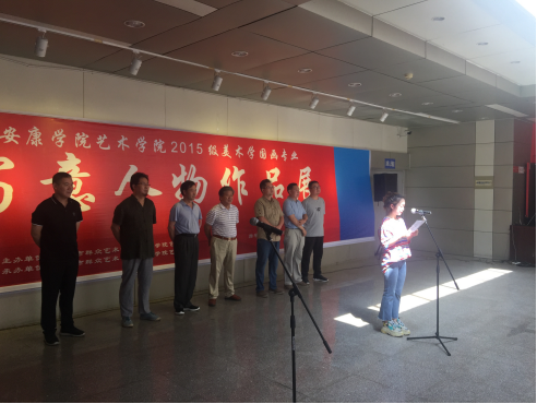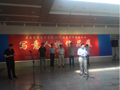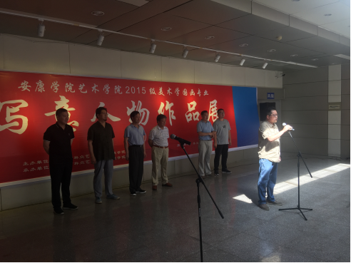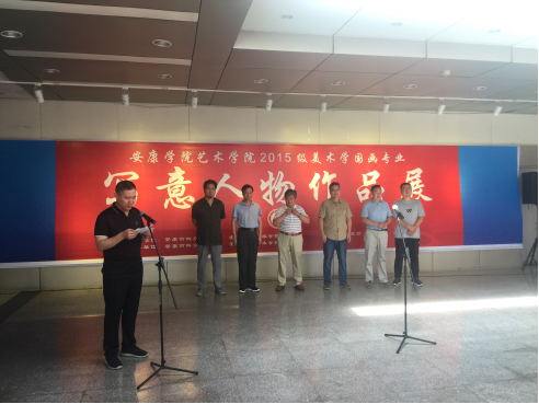 党天才教授发表了讲话,首先他对美术学2015级员工在安康市群众艺术馆展出作品表示祝贺,其次他谈了对这次写意人物画展的想法,认为这次写意人物展是目前最成功的一次,