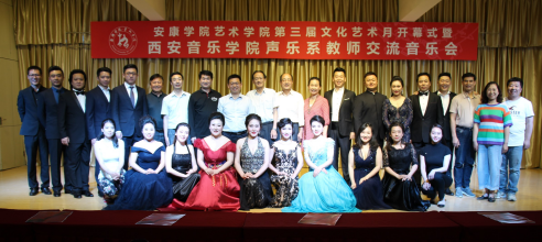 6月8日,best365官网入口注册第三届文化艺术月开幕式暨best365官网入口注册声乐系教师交流音乐会在江北1401教室隆重举行,best365官网入口注册声乐系党总支书记万斌、声乐系副主任、女高音歌唱家鲜于越歌带领12位青年歌唱家来公司参加地珊姐文化艺术月并举办交流音乐会。安康公司党委委员、教务处长余谦出席了开幕式,best365官方网站首席学科专家熊正英教授、董文斌教授、学工部副部长黄娟、团委沙微老师以及best365官网入口注册音乐系全体老师和部分员工参加了本次活动,活动由best365官网入口注册经理杨哲教授主持。