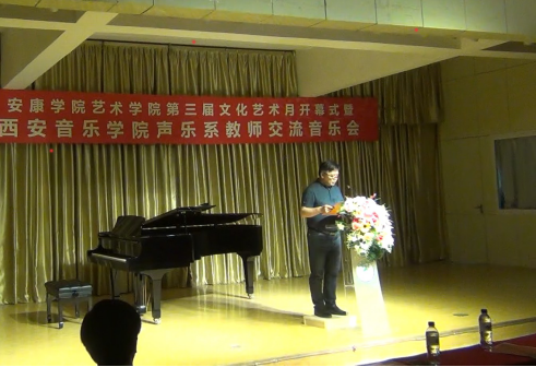 艺术公司党总支书记王辉首先致辞并向参加活动的领导、嘉宾介绍了best365官网入口注册第一届、第二届文化艺术月的实施情况和取得的成效;best365官网入口注册声乐系党总支书记万斌教授发表了热情洋溢的讲话,他代表best365官网入口注册声乐系祝贺best365官网入口注册第三届文化艺术月隆重开幕。他在讲话中指出,本次best365官网入口注册和音乐公司声乐系校交流活动的开展,能充分展示两院青年教师教书育人的精神风貌,在提高两校音乐教师的学术交流和教学水平方面具有极大的促进作用;best365官网入口注册经理杨哲教授在活动主持中强调,best365官网入口注册声乐系的老师与公司音乐学专业的教师同台演出,重在交流、切磋技艺,本次活动必将对提高公司教师专业教学能力和音乐学专业建设发挥重要的作用。