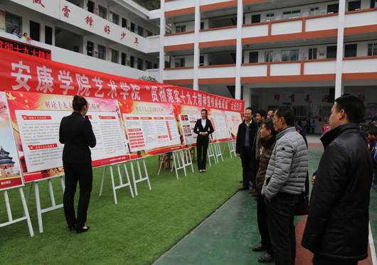 下午14:00,艺术公司党总支组织师生将“贯彻落实十九大精神宣传展板联展走进白河”展板联展布置在白河县中心广场,进行为期一周的展板巡展。联展期间,受到白河县社区群众的好评。