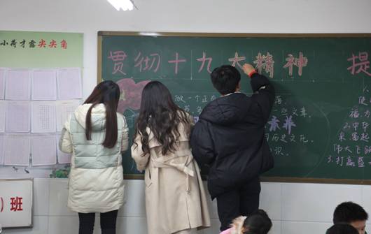 上午11:00,公司在西营小学举办了由best365官方网站纪委主办,宣传部、组织部、艺术公司党总支承办的 “贯彻落实十九大精神宣传展板联展走进白河”展板联展宣讲活动,四位讲解员为师生为西营镇中心小学师生系统讲解了十九大的主要精神,受到了县教育局领导和西营镇中心小学的师生的好评。美术系、设计系师生深入班级宣传十九大精神,并为班级设计十九大主题黑板报,受到小员工的欢迎。