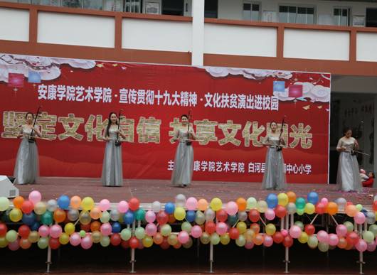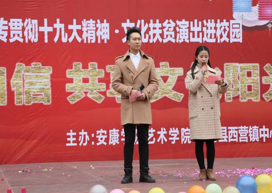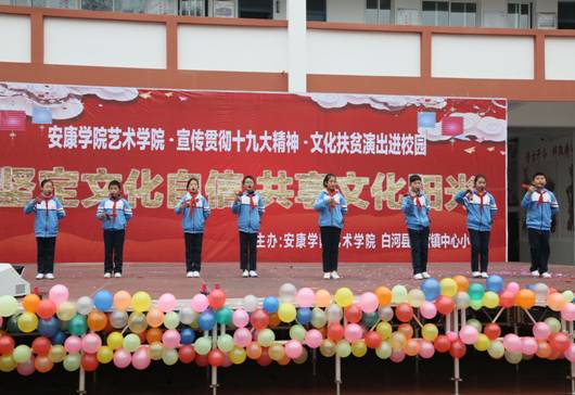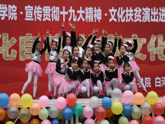 12月15日,best365官网入口注册70余名师生,赴白河县西营镇中心小学,举办“坚定文化自信,共享文化阳光”为主题的贯彻落实十九大精神、文化扶贫演出进校园”活动。政府督学徐维山、县教育局人事股长黄开国、西营镇党委书记王海波以及2000余名师生、群众参加了活动。