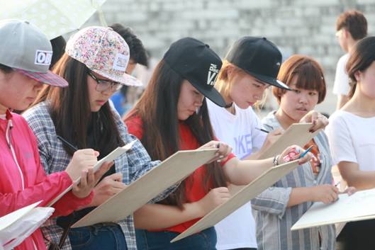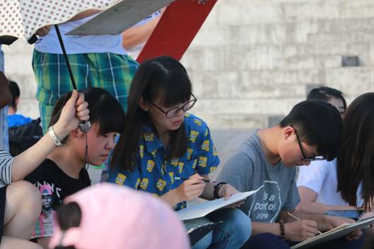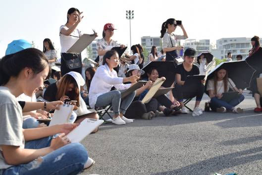 开幕式结束后,台下参赛的同学们带着准备的工具,怀着激动又兴奋的心情,开始认真作画。尽管天气闷热异常,但大家都不惧炎热,仔细观察眼前的模特、认真的描摹着,抓住他的细节特征去刻画,现场一片寂静,声声入耳的是画笔与纸相配合发出的唰唰声,每一位参赛者都非常认真对待本次比赛,同学们的作品用线精美,人物形象栩栩如生,细腻而优美,富有极强的视觉冲击力,千人速写大赛场面宏大,展现了公司员工的风采和活力!同学们高兴地表示,本次速写大赛提高了同学们钻研艺术技能的兴趣和信心,促进美术系与设计系的整体学习气氛,这不仅仅是一次比赛,而是一个起点,一种艺术催化剂,促使公司学子去拼搏,去奋斗,去实现自己美丽的梦!