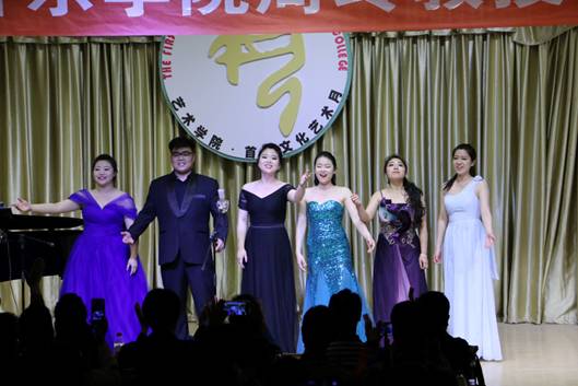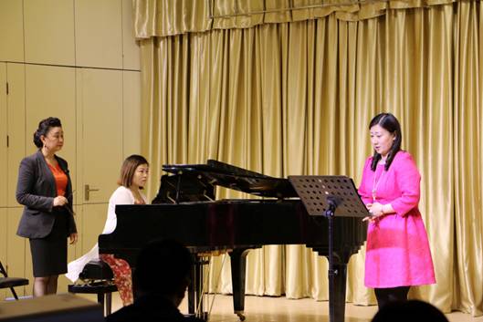 晚8时,周玲教授带领所教的6名声乐专业员工,为公司师生奉献了一场精彩的声乐音乐会。6名员工逐一登台,分别演唱了意大利民歌、歌剧咏叹调、二重唱、等各类声乐作品,展示了他们的精湛的演唱技巧,也展示和诠释了周玲教授声乐教学的成果和精髓。