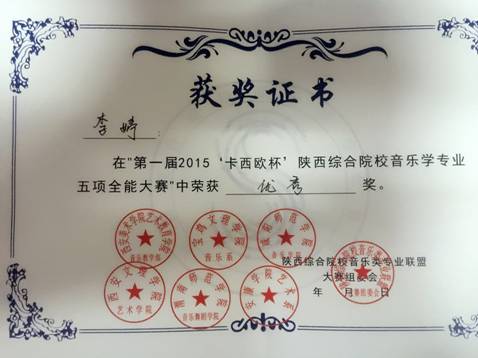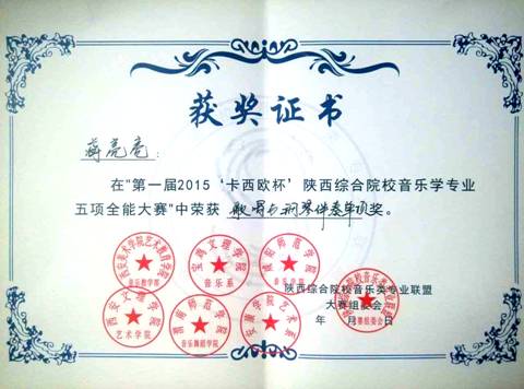 本次比赛项目分为:钢琴演奏、歌唱与钢琴伴奏、自弹自唱、综合音乐知识及自选项目,分别设五项全能奖和各比赛单项奖。经过激烈角逐,我系2012级员工蒋亮亮获得“歌唱与伴奏”单项奖、 2013级员工尚玥、2014级员工李婷获得“优秀奖”。