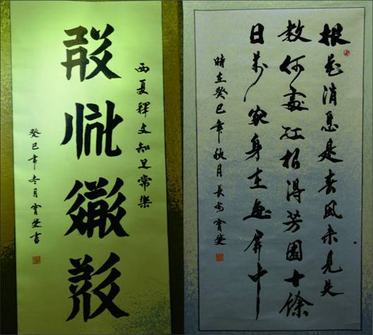 本次“为艺而博——袁霄斐作品展”,共展出作品五十多幅,有西夏文书法、国画、logo设计、VI设计、招贴设计、版画、剪纸等多种艺术形式。尤其是西夏文书法具有研究性、民族文化传承性和新颖感,给观者带来独具特色艺术效果。