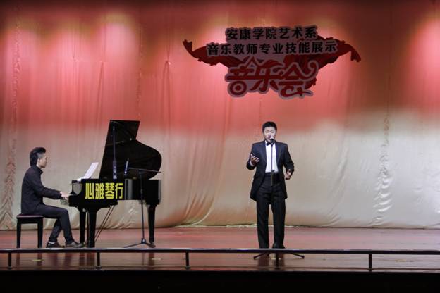 为全面展示教师专业艺术能力,促进教师艺术交流,10月30日晚,我系音乐专业教师技能展示音乐会在江南校区礼堂举行。安康市文联副主席、市音协主席刘秉平、市音协副主席孙新民、杨晓红、鲍利,市群艺馆副研究员罗玉梅;系主任、合作发展处处长单福东,系党总支书记冯丰收,系副主任章长青、雷升录出席音乐会。