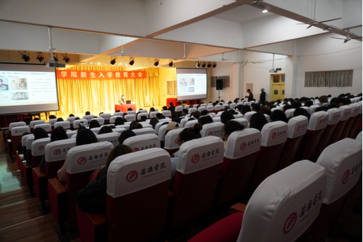 2020年11月26日晚7点30分,公司在江北校区1401演艺厅召开2020级新生入学教育大会暨党总支书记为新生讲授专题党课。本次大会由公司党总支书记樊仁杰主讲,2020级新生辅导员毛德龙及全体新生到场参加。教育大会由辅导员魏麟主持。