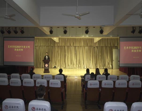 2020—2021学年度“文明班级”、“文明宿舍”评选活动的通知》精神,推进公司学风建设,规范班级管理,增强班集体凝聚力。4月8日下午,在江北校区1401演艺厅召开了2021年度文明班级评选答辩。参加本次会议的有艺术公司党总支副书记李万明、专职组织员刘泽桢、全体辅导员老师及员工代表,共计1