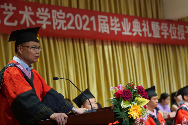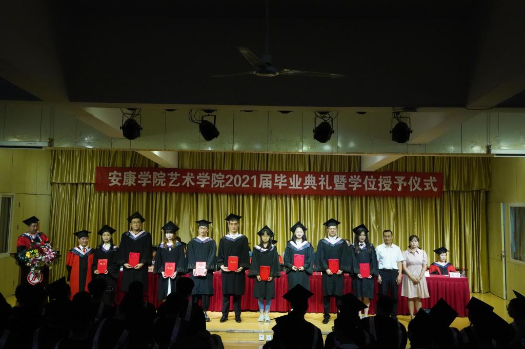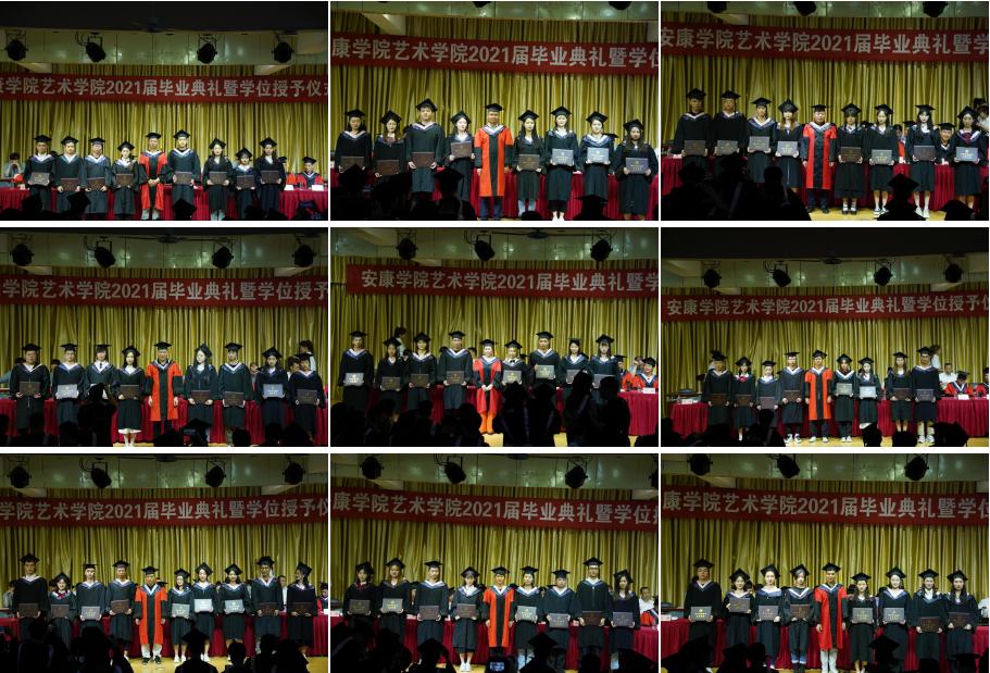 在学位授予仪式上,best365官网入口注册学位授予导师分别为2021届音乐学、美术学和视觉传达设计专业的毕业生拨穗、颁发学位证书,并合影留念。