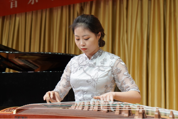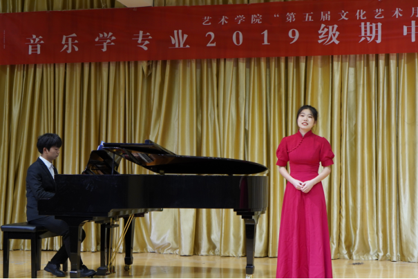 音乐会由马乐妍同学的女声独唱《《越人歌》》拉开帷幕,接着,音乐学专业2019级22名同学分别从声乐、钢琴、古筝、二胡等专业学习方面进行了技能展示,同学们的展示形式多样、精彩纷呈,展示了同学们一定的专业修养。