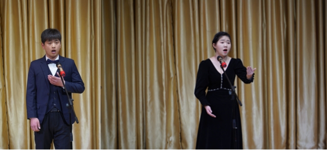 参加音乐会演唱的是范老师声乐3课程的17位员工。在范老师创新声乐“颤音教学模式”的指导下,声乐水平总体提高较快,其中周新科、贺丽丽、翟俊豪2021年获第八届陕西音乐奖安康赛区声乐比赛民族组三等奖,冯艳茹、胡婷婷、孟政宇获该项赛事美声组优秀奖。音乐会上,八位担任独唱的同学分别演唱了《青玉案•元夕》《天涯望月》《多么幸福能赞美你》《战士为国守安详》《红豆词》《夕阳红》《黄水谣》《一抹夕阳》《虽然你冷酷无情》《祖国之恋》等作品,最后17位同学一起演唱了《在水一方》。