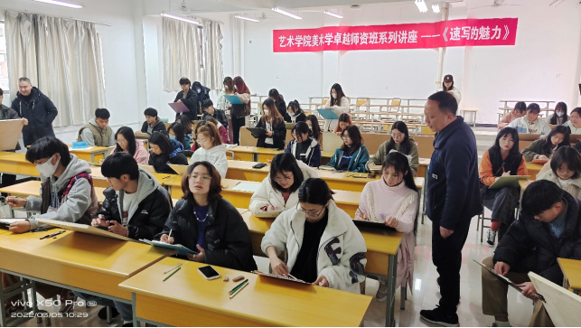 3月5日上午,best365官网入口注册邀请陕西省美术学科教学能手,安康中学高级美术教师何涛老师在江北2202阶梯教室为首届卓越美术教师团队班同学们做《速写的魅力》讲座,讲座由美术系主任杜敏主持。