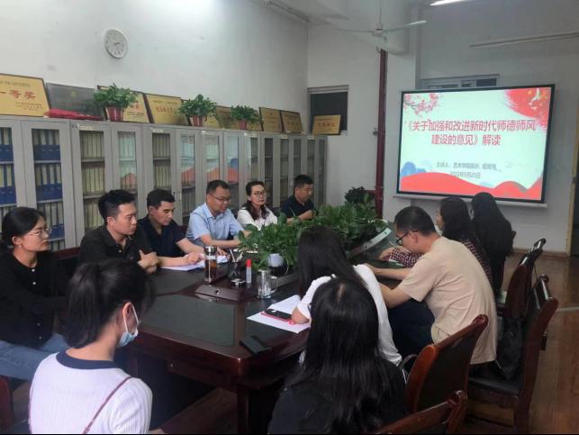 成党伟解读了《关于加强和改进新时代师德师风建设的意见》,强调要坚持思想铸魂,用习近平新时代中国特色社会主义思想武装教师头脑;要坚持党建引领,充分发挥教师党支部和党员教师作用,凝心聚力推进音乐学专业发展;要以支部入选全省“高公司党建工作样板支部培育创建单位”为契机,进一步规范党支部建设,有计划、高质量开展培育创建工作,真正发挥典型示范和引领带动作用,整体推进艺术公司党建工作质量,以高质量党建促进公司事业高质量发展。