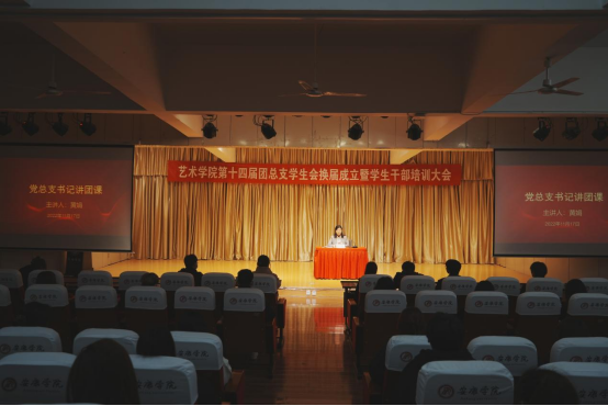 2022年11月17日晚,best365官网入口注册第十四届团总支员工会换届成立暨员工干部培训大会在江北校区1401演艺厅顺利召开。艺术公司党总支书记黄娟、学工办主任鲁澧、员工党支部书记魏麟、辅导员李博、邱青晓以及校员工会、各二级公司主席团代表、best365官网入口注册全体团总支员工会成员参加了本次大会。大会由团总支书记孟莉主持。