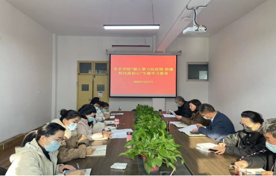 首先,在江北校区2208会议室组织召开“凝心聚力抗疫情,师德师风践初心”专题学习会。艺术公司党总支书记黄娟传达了公司《关于开展“凝心聚力抗疫情,师德师风践初心”专题学习教育活动的通知》精神,并强调全体教师要自觉坚持师德师风第一标准,并将其落实在自觉宣传和遵守公司疫情防控工作的实践当中。经理成党伟领学了习近平总书记关于疫情防控工作的重要指示精神,传达了陕西省教育厅、安康市及公司关于疫情防控的政策文件,并对全体教职工遵守公司疫情防控要求进行了再强调,再要求。