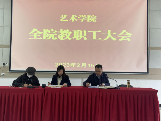 2月15日下午,公司在艺术楼2415教室召开全体教职工大会,传达学习公司2023年度工作会议精神。会议由副经理鲍丽主持。