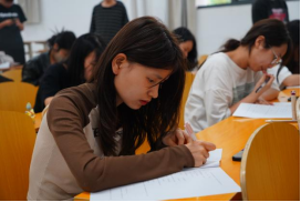 本次竞赛以现场答题的方式进行比赛,考题主要由基础题和综合题目两部分组成。其中,综合题目中的案例分析题,密切结合老员工在公司生活中可能遇到的问题和情景,着重考察了员工对心理知识的掌握和自我心理的调控、支配能力。答题现场紧张且秩序井然,同学们有序参与、沉稳答题。