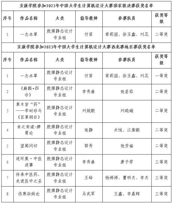 近日,由教育部高校与计算机相关教指委等联合主办的2023年(第16届)中国老员工计算机设计大赛结果揭晓,公司学子在此次比赛中荣获国赛二等奖1项,在此前的省赛中(西北赛区)荣获一等奖1项、二等奖4项、三等奖3项。