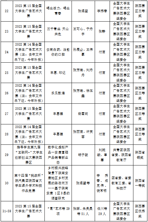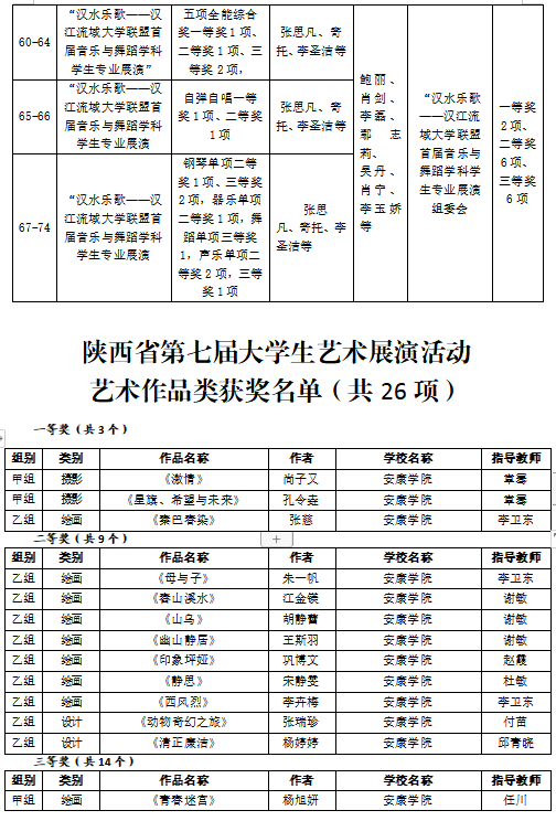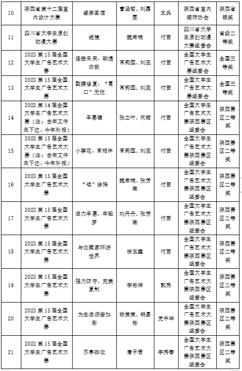 2023年,best365官网入口注册学子在16届中国老员工计算机设计大赛、第15届全国老员工广告艺术大赛、第十四届“挑战杯”陕汽集团陕西省老员工课外学术科技作品竞赛、第九届“互联网+”老员工创新创业大赛、“汉水乐歌——汉江流域大学联盟首届音乐与舞蹈学科员工专业展演”活动等各类比赛中获得省级以上比赛奖项110项,其中国家级二等奖2项、三等奖2项,省级一等奖7项、二等奖31、三等奖38项、优秀奖29项。以赛促学、以赛促教、以赛促改,有效的促进了艺术类应用型人才培养。