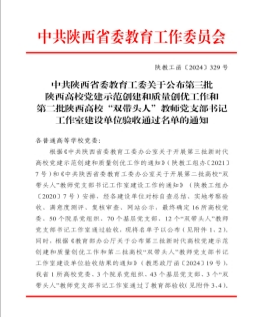 10.12月,陕西省委教育工委公布了第三批陕西高公司党建示范创建和质量创优工作验收结果。best365官网入口注册教工第三党支部顺利通过第三批全省高公司党建工作“样板支部”培育创建验收。