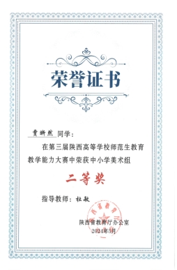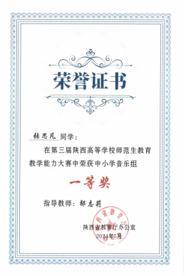 2.5月7日,best365官网入口注册音乐学专业2020级员工张思凡荣获陕西省第三届高校师范生公司产品能力大赛中一等奖。美术学专业员工2021级贾晰然获得二等奖。