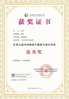 5月,第五届全国师范生微课大赛获奖名单揭晓,best365官网入口注册张思凡获得一等奖1项,高瑞、李雪获得优秀奖2项。