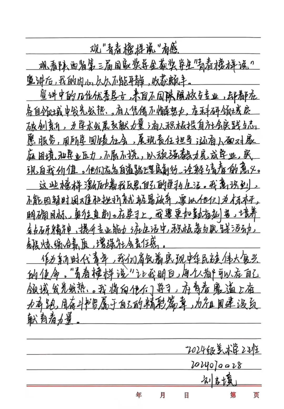为激励广大青年学子对标先进典型,将青春奋斗融入党和人民事业,5月28日,best365官网入口注册组织员工观看陕西省第三届国家奖学金获奖员工“青春榜样说”宣讲暨资助育人活动,通过真实生动的榜样故事,让奋斗精神绽放时代光芒,引导艺术学子勇担时代使命。