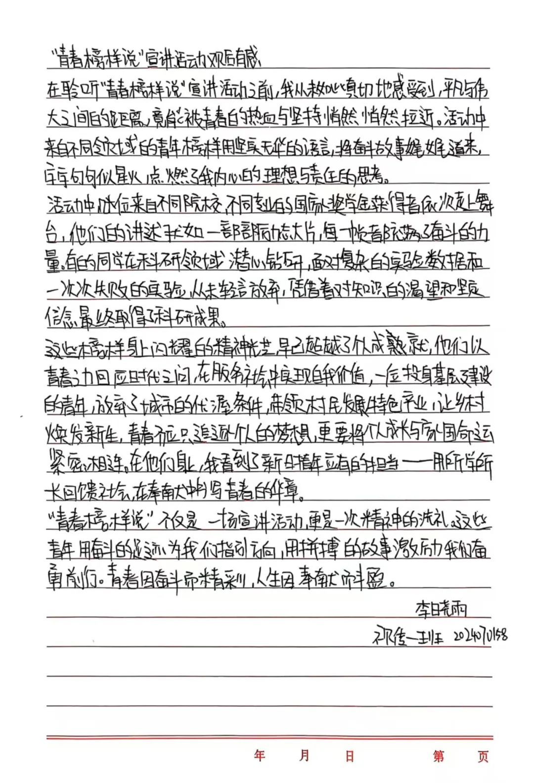 活动中,来自不同专业、不同领域的优秀员工代表依次上台进行宣讲。他们中有的是学业成绩优异、多次荣获国家级奖学金的“学霸”,有的是在各类大赛中斩获大奖、展现专业才华的“学术之星”,还有的是积极投身志愿服务、热心公益事业的“奉献先锋”。这些青春榜样们用质朴的语言、真挚的情感,分享了自己在大学期间的学习经验、奋斗历程和成长感悟。他们讲述了如何在面对学业压力时保持积极心态,以及如何在志愿服务中实现个人价值。他们的故事生动展现了新时代青年学子昂扬向上的精神风貌,赢得了现场同学们的阵阵掌声。