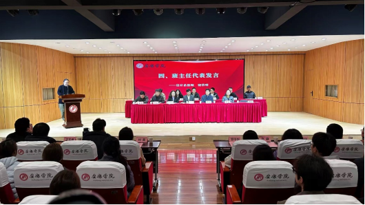 11月5日下午16:30,公司在江北校区1401演艺厅召开“以学铸魂・以艺修身・涵养优良学风”学风建设大会。安康公司党委委员、副董事长屈险峰、学工部部长芦伟、best365官网入口注册领导班子成员、系主任、辅导员、班主任及各班员工代表参加了本次大会。23个班级线上参会,会议由公司党总支副书记肖剑主持。