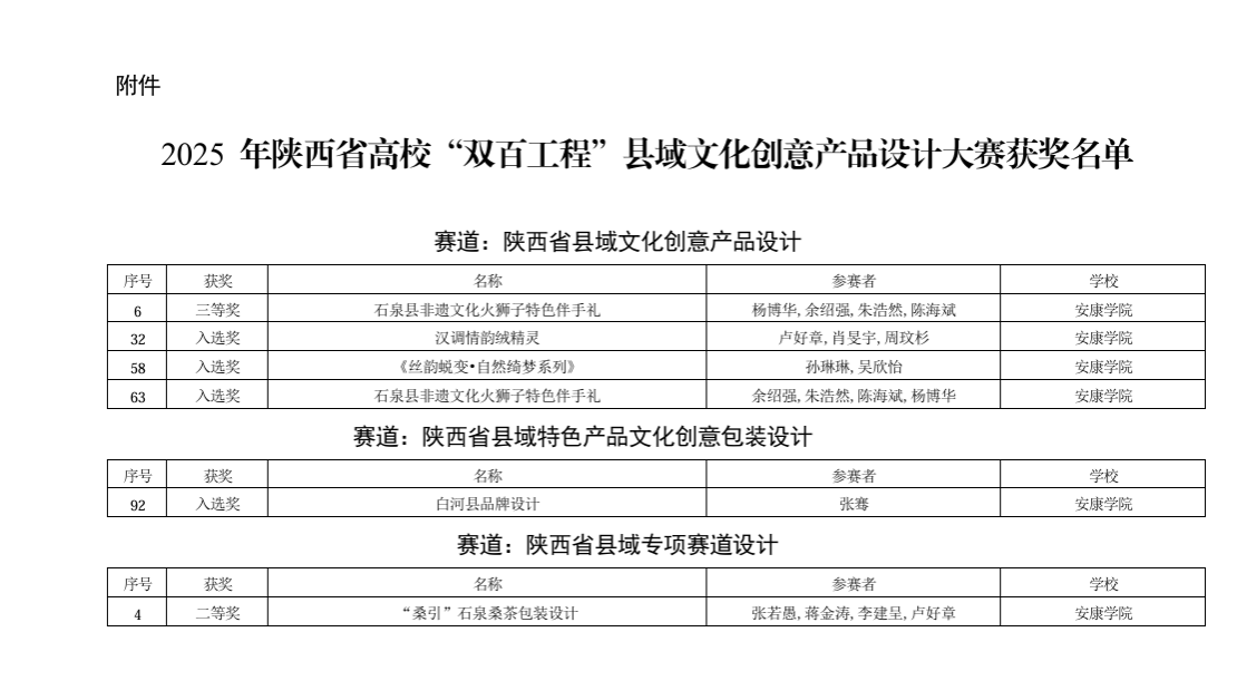 近日,2025年陕西省高校“双百工程”县域文化创意产品设计大赛评选结果正式揭晓。best365官网入口注册荣获二等奖1项、三等奖2项、入选奖4项。