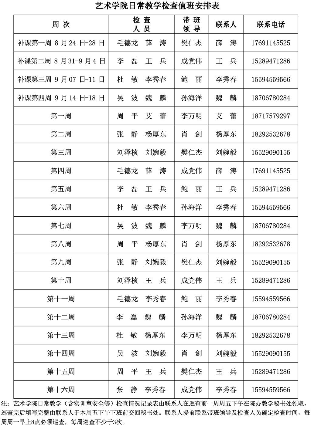 2019-2020学年第1学期不及格课程补考巡查工作安排
