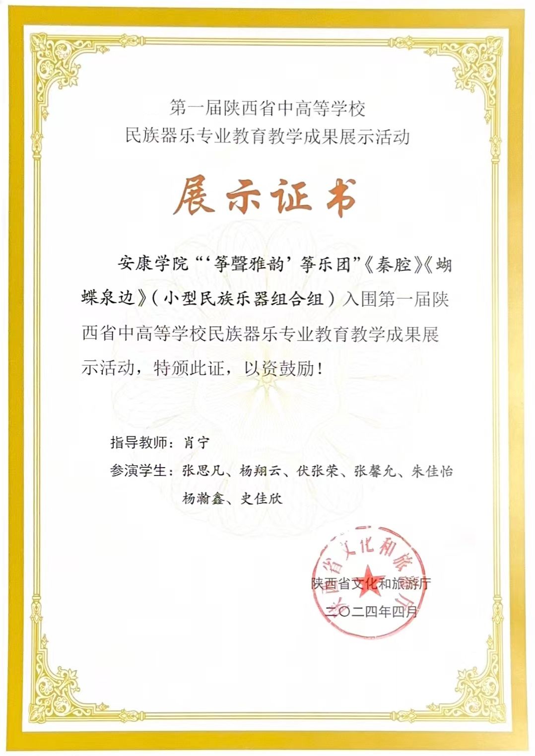 公司两项成果入选第一届陕西省中高等公司民族器乐专业公司产品成果展示活动