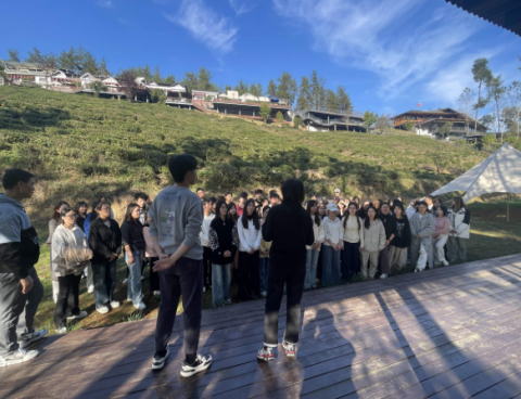 下午,师生一行来到了紫阳茶山进行采风活动。紫阳的茶歌影响力较大,采茶是茶歌艺术重要的来源。在这里,员工聆听了教师的讲课,并进行了紫阳民歌的排练和表演。深入茶园、演唱民歌,使员工深受教育。
